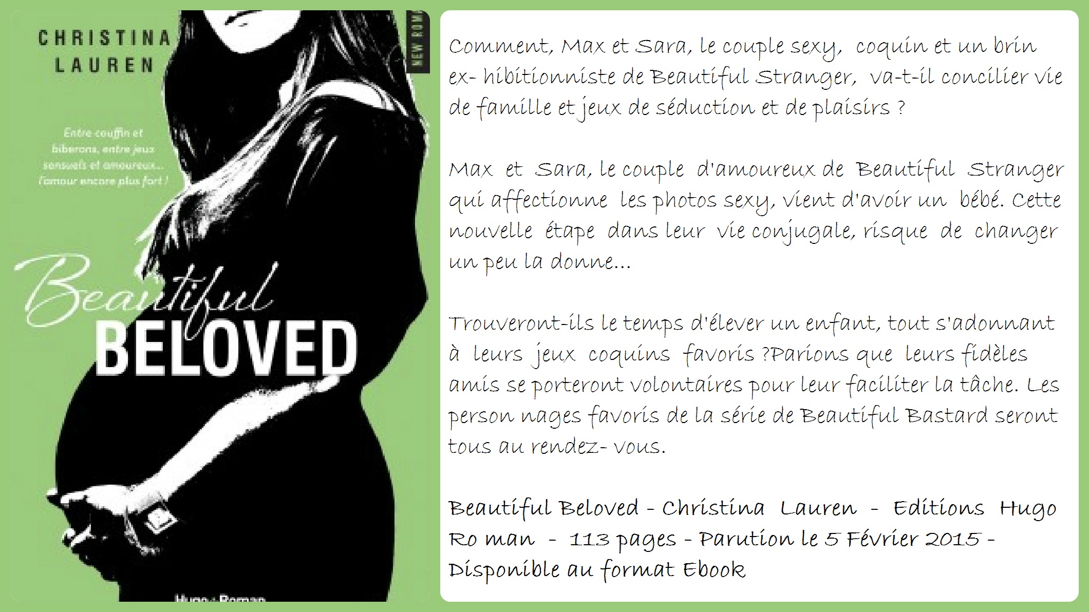 Retrouver cette série a été un réel plaisir. Même s’il s’agit plus d’une nouvelle qu’un roman je ne regrette pas de retrouver l’écriture toujours aussi rafraîchissante et simple de Christina et de Lauren. En effet, « Beautiful Beloved » est encore une fois une réussite pleine d’humour, de tendresse mais aussi de sensualité.