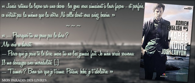 Un très beau final que nous offre Josh Lanyon. J’en ressors de ma lecture à la fois heureuse et triste. Heureuse d’avoir suivit les aventures de cet incroyable couple. Triste car ces deux là vont terriblement me manquer… Et je pense que je vais très prochainement lire le petit bonus en VO pour l’Épilogue final…