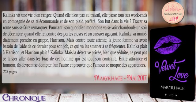 Et avec « Velvet love » c’est ce qu’elle a fait. Avec une plume précise, percutante et captivante elle nous offre une romance très différente de ce que l’on a l’habitude de lire chez elle. Une intrigue très proche de la réalité qui est menée avec brio. Des émotions d’une grande sincérité qui sont retranscrits avec adresse. Un ton à la fois pétillant et émouvant. Un rythme soutenu où l’on accroche dès le début et où l’on ne s’ennuie pas un seul instant.
