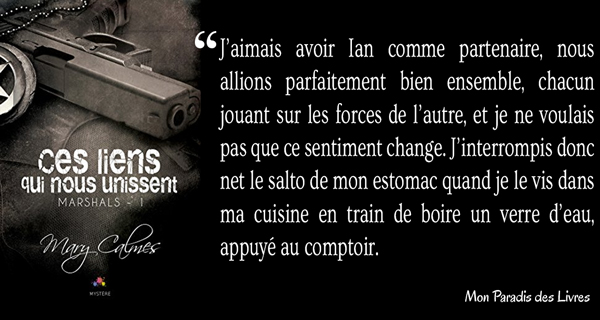 Commençons par nos héros. Oui je l’avouer j’ai eu un coup foudre pour Miro et Ian. Deux US Marshals. Deux partenaires. Deux meilleurs amis. L’un est gay. L’autre est hétéro. L’un a craqué pour son partenaire. L’autre a une petite amie. On sent bien ce lien particulier ainsi que cette connexion fusionnelle entre eux. Et également cette indéniable attraction et cette alchimie. Pourtant l’un ne semble pas voir tandis que l’autre ne veut plus se battre contre ses sentiments. Et il aura fallut d’un imprévu et d’un malencontreux concours de circonstance pour que leur amitié se transforme en quelque chose de beaucoup plus fort…