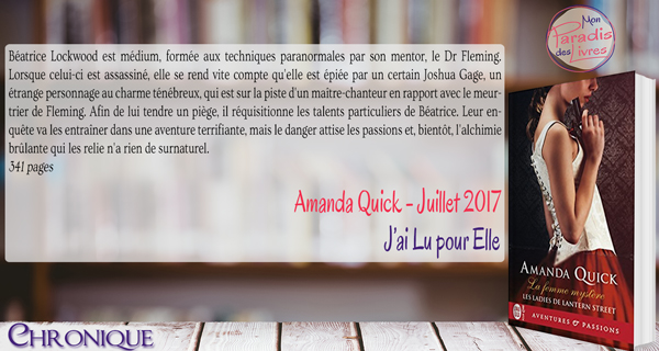 Second opus de la série Les Ladies de Lantern Street d’Amanda Quick. Un tome qui est peu être lu indépendamment du précédent et qui est surtout une agréable surprise.