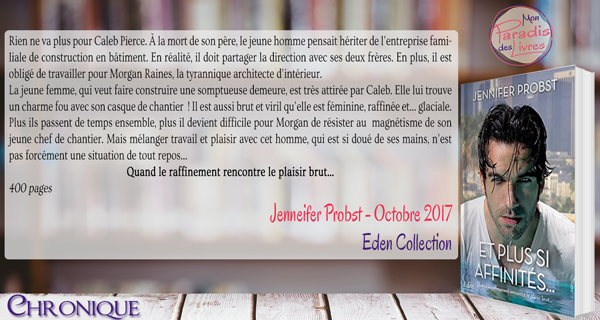 C’est toujours un réel plaisir de retrouver la plume de Jennifer Probst. C’est toujours rafraîchissant et captivant. Et même si son intrigue est des plus classiques, elle tient la route et fait tout de même son petit effet. Des émotions et des sentiments biens présents. Un ton palpitant et un rythme soutenu où l’on ne voit pas le temps passé et où l’on se laisse happer par une myriade de sensations.
