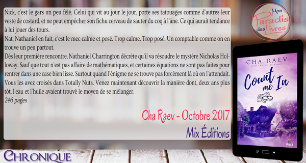 En bref, la magie Cha Raev a une nouvelle fois opéré ! Une délicieuse et charmante petite comédie qui vous redonnera à coup sûr le sourire et qui est bien évidemment à lire sans modération. Enfin je finirai avec ces petits mots : « Merci à toi Cha Raev pour nous avoir livré une minime partie de ta vie et pour ce magnifique message. »