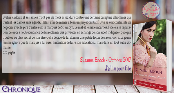 Quand il s’agit de romances historiques à l’époque de Régence, Les écrits de Suzanne Enoch est une valeur sûre. Et ce livre ne fait pas exception ! Une passionnante et charmante histoire où joutes verbales, humour, situations cocasses, tension, passion et émotions sont au rendez-vous. Tout ce qu’il faut pour passer un savoureux moment de détente…