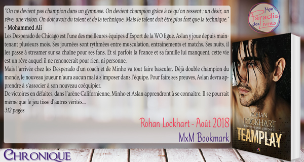 En bref… On peut compter sur le talent hors pair de Rohan Lockhart pour nous faire vivre une expérience unique ! « Teamplay » est une totale réussite ! Une lecture intense en émotions qui vous happera dès les premières pages pour ne plus vous lâcher un seul instant. Je n’ai jamais rien lu de tel et j’en redemande encore ! Et je suis hyper contente d’apprendre qu’une suite est en cours de préparation…