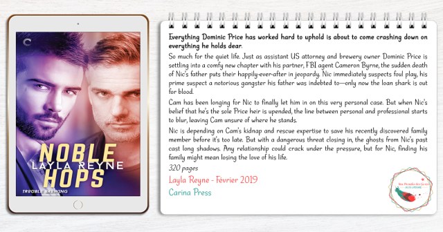 En bref… Layla Reyne clôture comme il se doit sa trilogie Trouble Brewing. Le parfait mélange de tension palpable, de suspens, d’actions, de rebondissements, de révélations, de danger, de passion, de sensualité et d’émotions vives. Tout ce qu’il faut pour passer excellent moment ! Un épatant romantic suspens qui est à découvrir pour les amateurs de genre…