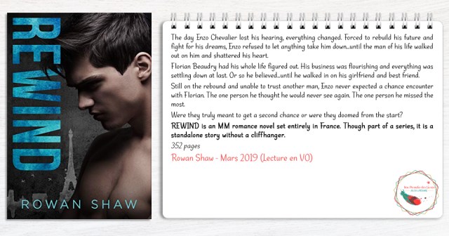 En bref… « Rewind » est une charmante et émouvante d’histoire sur le premier amour déchiré par une tragédie. Une belle leçon de la vie qui vous fera vibrer de la meilleure façon qui soit et qui vous donnera à réflexion. L’univers de Rowan Shaw me plaît beaucoup. Elle aborde des sujets graves de la vie sans chichi ni artifice. Et il me tarde ce qu’elle va nous réserver dans la suite à venir…
