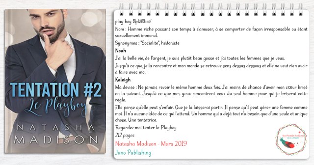 En bref… Une fois de plus, j’ai littéralement succombé à la plume si fine de Natasha Madison. Il faut dire qu’elle n’a pas son pareil pour que ses lecteurs puissent passer un exaltant et flamboyant moment de détente ! J’ai littéralement décoré ce livre ! Si vous cherchez une comédie romantique avec un duo haut en couleur et qui en prime fasse un bien fou à votre moral ? Alors ne cherchez plus ! « Le Playboy » est exactement ce qu’il vous faut ! À savourer sans modération…