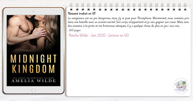 En bref… Amelia Wilde clôture comme il se doit son exceptionnelle trilogie. Entre rebondissements, danger, tension, révélations, émotions vives et érotisme, je me suis littéralement régalée ! Si vous cherchez une saga unique dans son genre aussi bien sombre qu’épatante s’inspirant d’un conte classique de la mythologie grecque avec des personnages imparfaitement parfaits et qui vous fasse vibrer dans tous les sens du terme. Alors King of Shadows est exactement ce qu’il vous faut ! Quand à moi j’espère de tout cœur que le taciturne Poséidon aura un jour sa propre histoire…