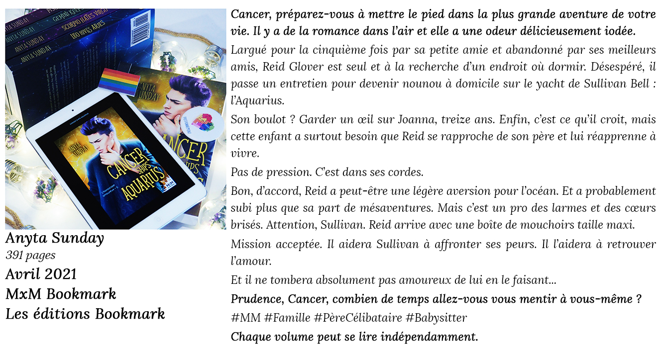Le dernier opus de la sublime saga L’horoscope amoureux arrive en VF le 7 avril prochain. J’ai eu l’occasion de le lire en VO l’année dernière. Et m’étant littéralement régalée, j’ai décidé de le relire à nouveau. Alors me direz-vous si je connais déjà l’histoire pourquoi faire cela ? Deux raisons. Déjà c’est Anyta Sunday, la reine de la slow-romance et ensuite c’est l’une de mes sagas préférées… Et à nouveau j’ai passé un pétillant moment délicieux en tout point… Lire la suite