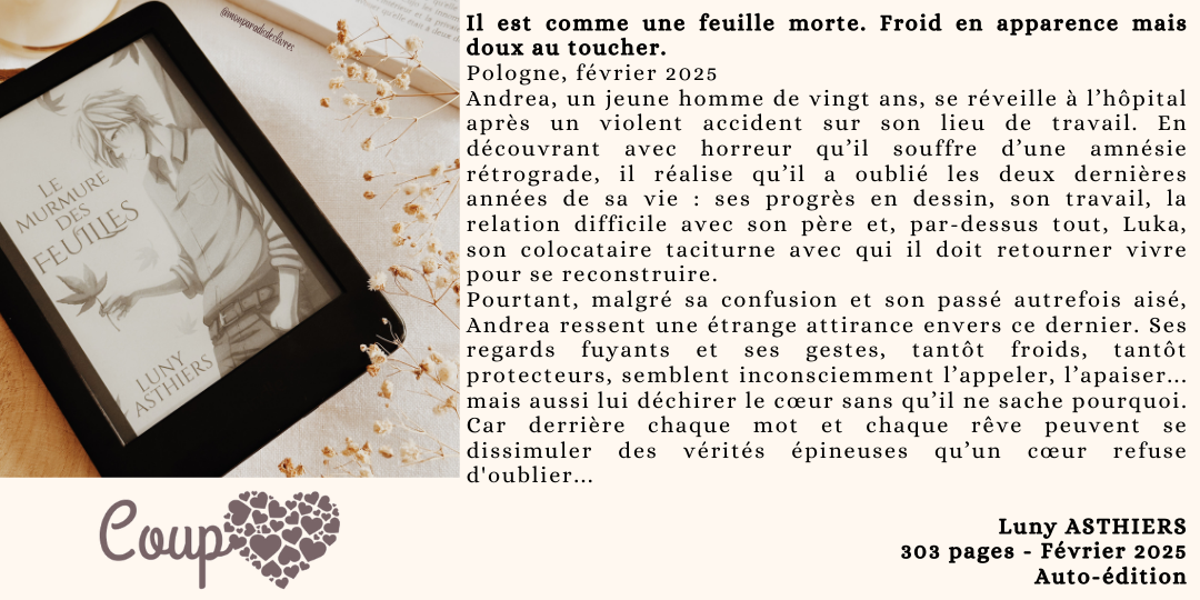 Une belle plume que j’ai rencontrée l’année dernière dans la romantasy et qui fait désormais partie de ma liste des auteurs préférés. Alors lorsqu’elle m’a proposé de découvrir son dernier bébé dans la romance contemporaine, je n’ai pas hésité un seul instant. Et à nouveau et pour mon plus grand bonheur je ressors de ma lecture avec le cœur secoué dans tous les sens… Lire la suite
