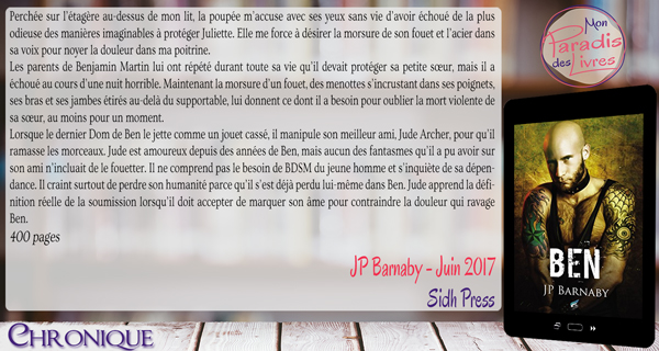 Un univers que j’avais découvert dans la romance paranormale et qui m’avait littéralement séduite. Alors quand j’ai su que cette fois-ci l’auteure s’attaquait à un tout autre genre celui du BDSM, j’ai été curieuse de savoir ce qu’elle allait nous réserver… Et bien s’il y a bien une chose que je peux vous dire c’est que... Lire la suite