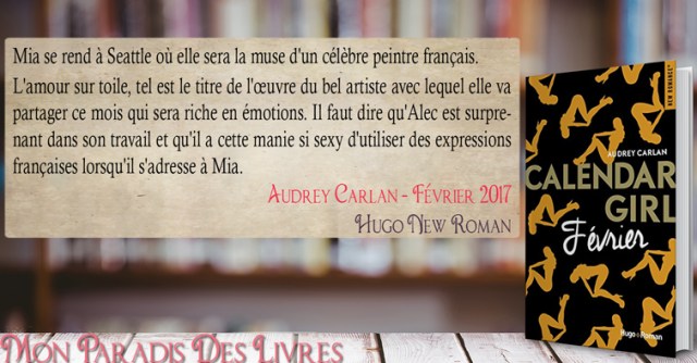Second opus de la série Calendar Girl. Une série qui a su attiser ma curiosité par sa singularité. Et bien que je ne sois pas une adepte de ce genre de série (concernant l’histoire d’une escort girl), je dois bien reconnaître que celle-ci fait exception. Lire la suite