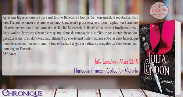 Changement de registre et direction sur les terres écossaises avec les Highlanders du clan des Mackenzie… Et une fois de plus je ressors de ma lecture agréable surprise… Lire la suite