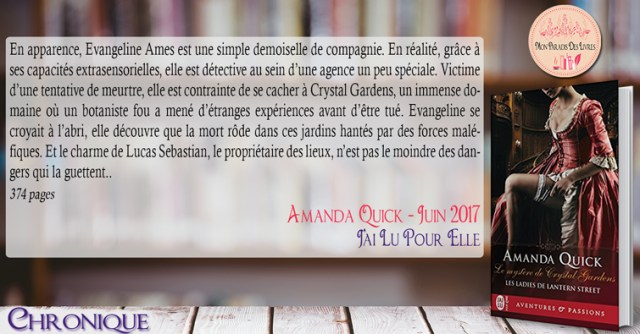 Second opus de la série Les Ladies de Lantern Street d’Amanda Quick. Un tome qui est peu être lu indépendamment du précédent et qui est surtout une agréable surprise. Lire la suite