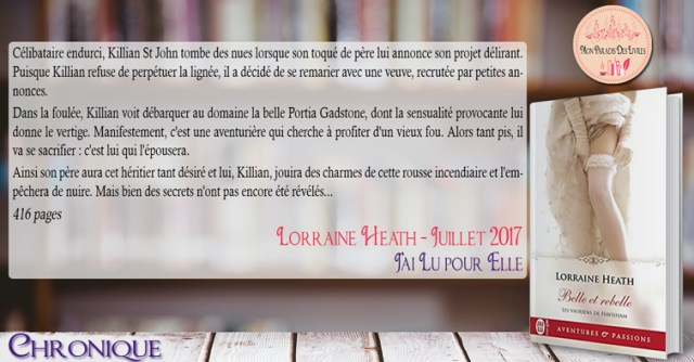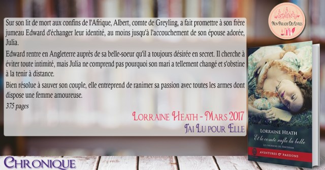 Un troisième opus qui est tout simplement extraordinaire. Les deux premiers opus m’avait beaucoup plu mais une fois de plus Lorraine Heath a su me prendre au dépourvu. Je m’attendais à passer un moment sans prise de tête avec beaucoup de légèreté. Et finalement ce fut tout autre chose… Lire la suite