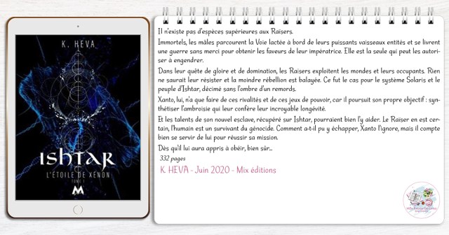 Aujourd’hui paraît chez Mix éditions, « Ishtar » de K. Heva. Et il est temps pour moi de vous parler de cet époustouflant livre. Une couverture qui m’avait tapé dans l’œil et un résumé des plus attrayants. Un univers francophone que je découvre et pour une première rencontre je suis d’ores et déjà sous le charme… Lire la suite