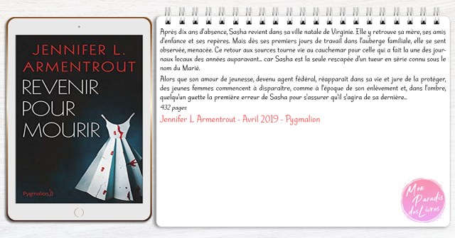 Ce n’est un secret pour personne, je suis une grande fan de Jennifer L. Armentrout. Qu’elle écrive de la romance New-Adult, du Young Adult ou encore de la Fantasy/Paranormal, elle arrive toujours à m’emporter de la meilleure façon qui soit. Mais dans le genre Thriller/Romantic suspens c’est une grande première pour moi. Lire la suite